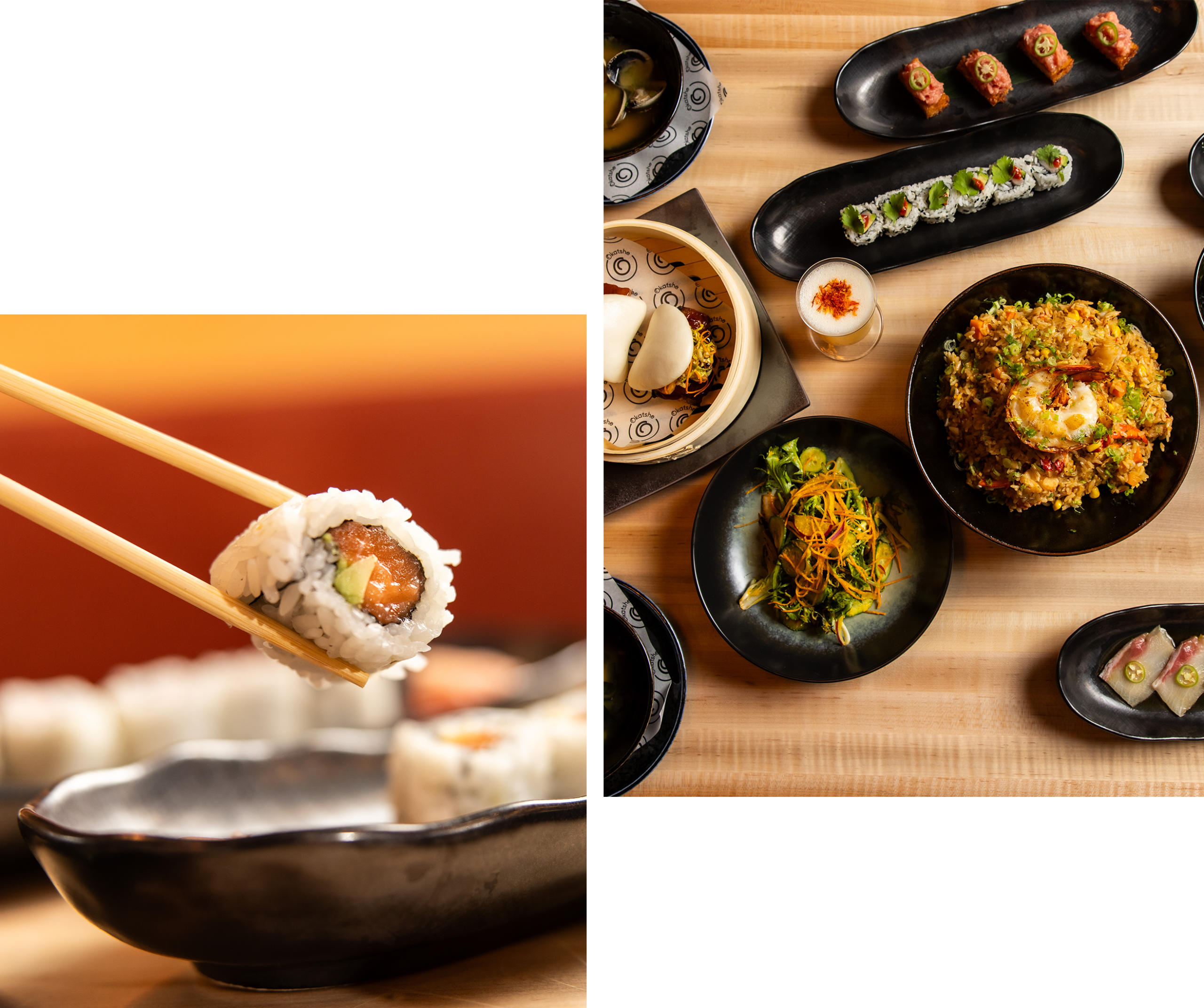 On the table, the menu parades artful, shareable plates designed for exploration: hand-rolled sushi, sashimi & maki rolls, tender flame-grilled yakitori skewers, and a curated selection of Japanese whiskies, sake, & beers.